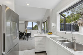 Tucked away at the end of a quiet cul-de-sac, this elevated and private home offers peace, beauty, all-day sun, and a rare connection to nature. With three bedrooms plus a study and one bathroom, it's designed for comfort - unwind in the deep bath or stay cosy by the log burner through winter.