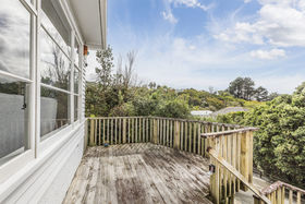 Set on an elevated section with drive-on access, the home offers open-plan living with beautiful wooden floors as a standout character feature, complemented by new carpet. The layout is simple and functional, making good use of the elevated position.
